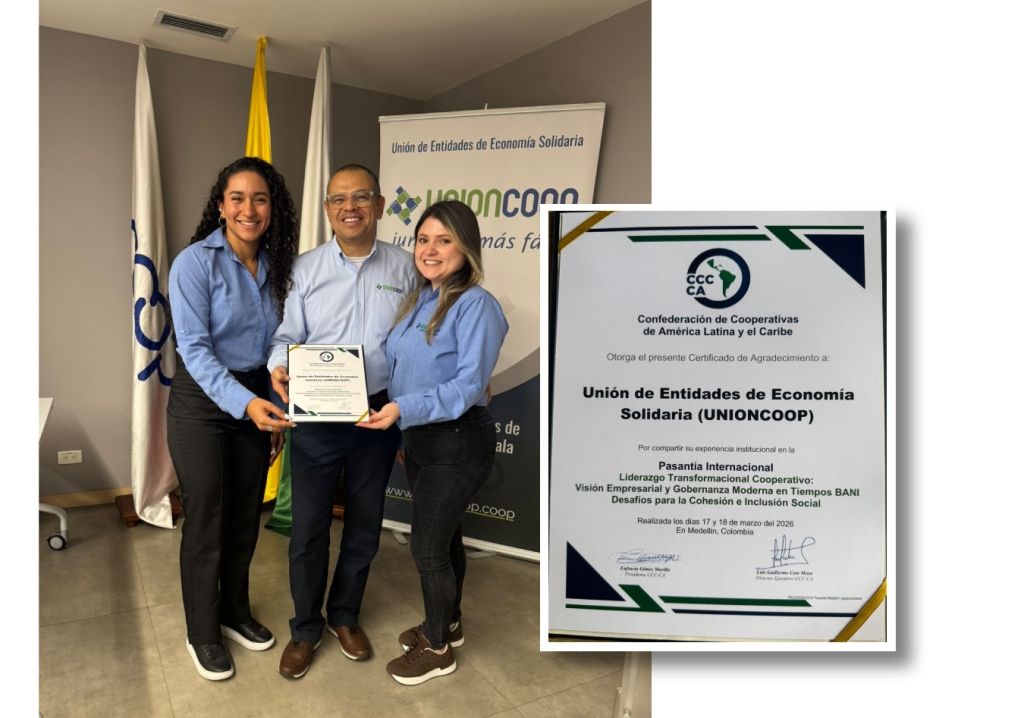 Unioncoop participó en la pasantía internacional “Liderazgo Transformacional Cooperativo: Visión Empresarial y Gobernanza Moderna en Tiempos BANI – Desafíos para la Cohesión e Inclusión Social”, organizada por la Confederación de Cooperativas de América Latina y el Caribe, los días 17 y 18 de marzo, con la participación de delegaciones de diversos países de Centroamérica.